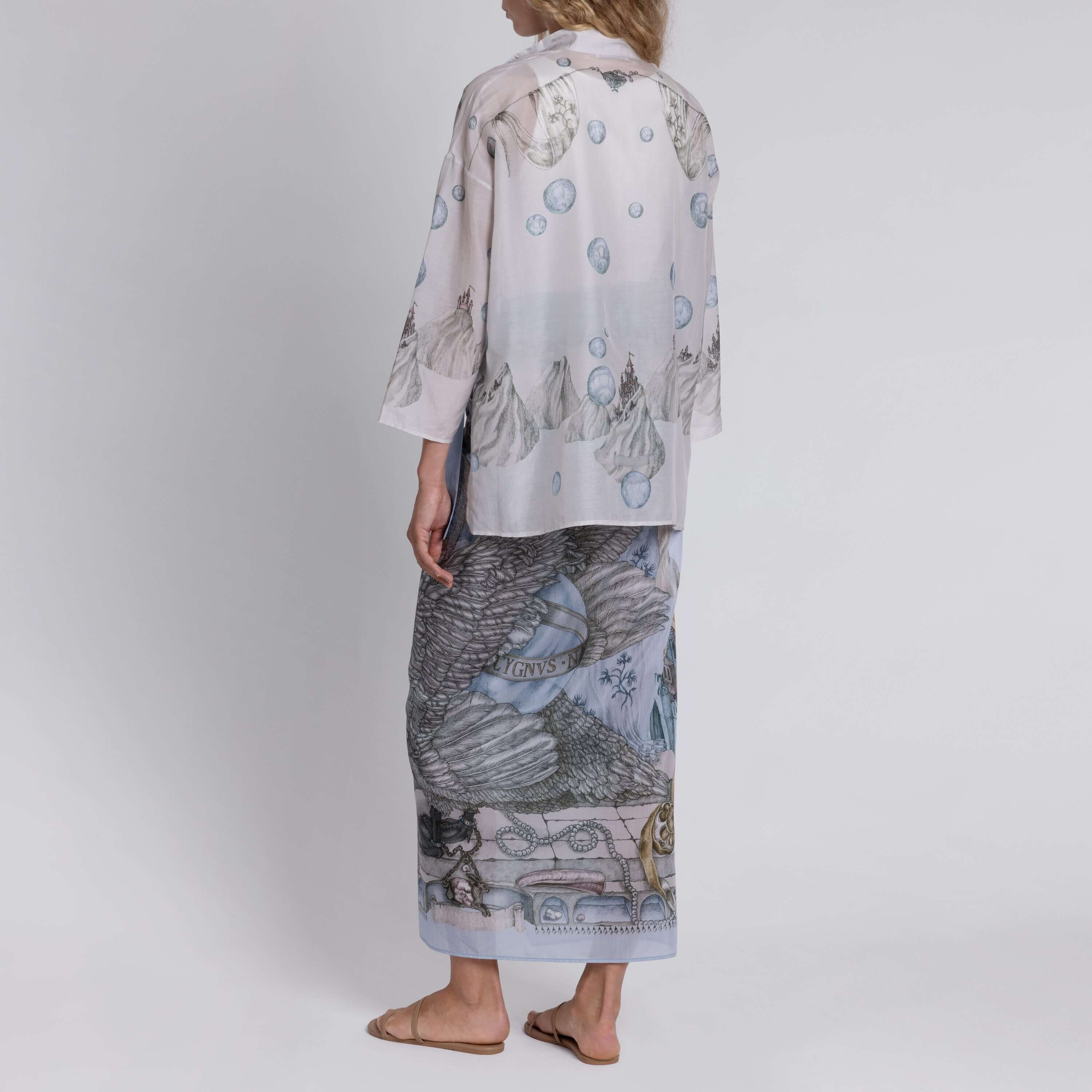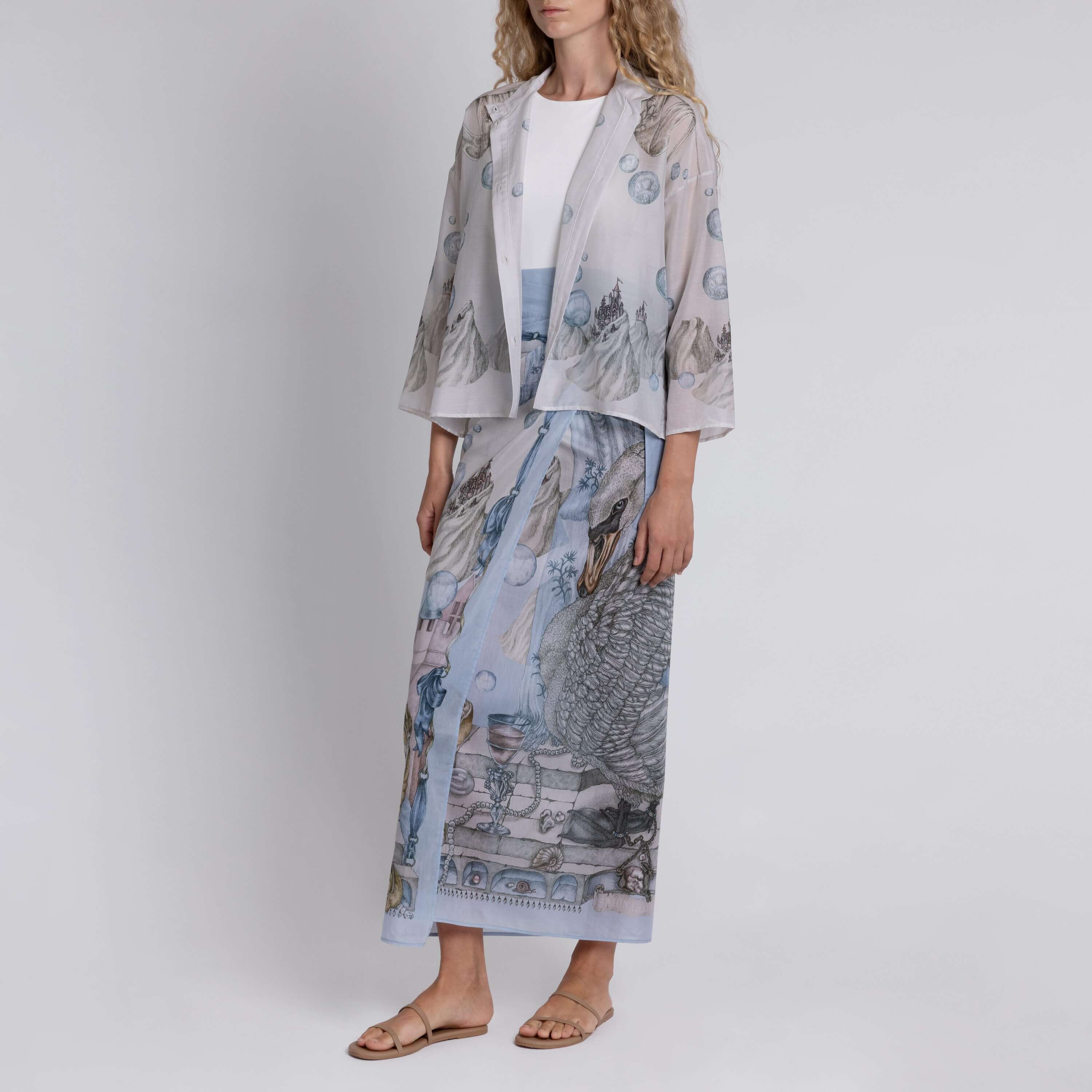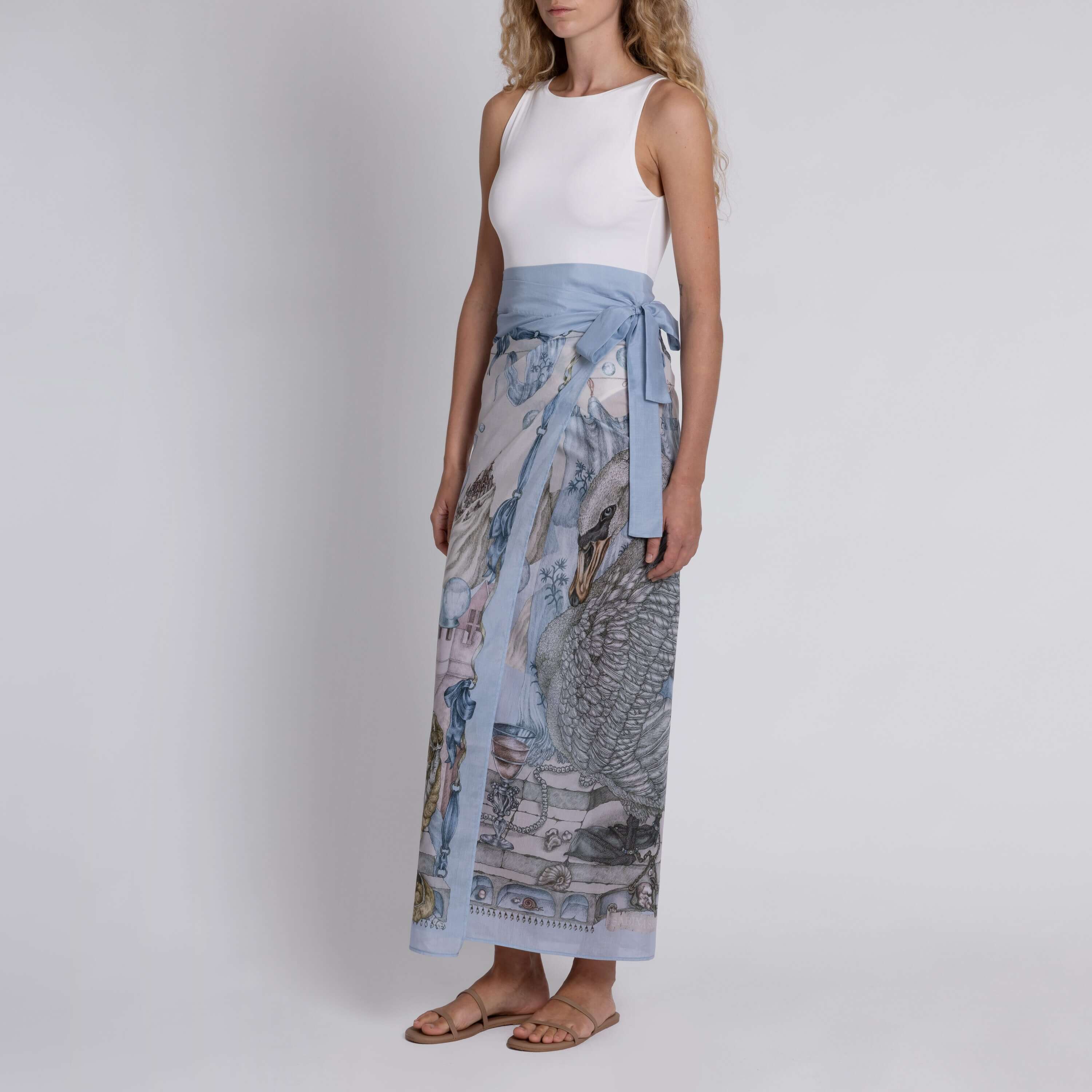 This Cotton/Silk Pareo is constructed in London from our ethereal, lightweight voile. It features a rectangular shape with ribbon ties to offer a multitude of styling options; as an elegant beach wrap around the hips, twisted at the centre front to create a skirt, knotted at the neck to create a simple dress or folded into a wrap top, these are just a few possible variations of the versatile pareo.