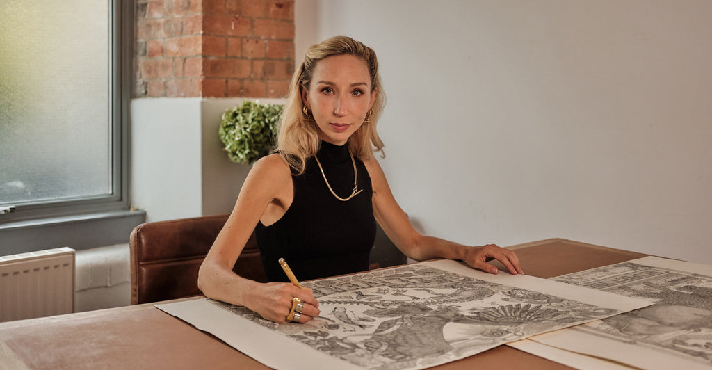 Sabina Savage is a British artist and designer known for her exquisite, hand-rendered illustrations. Raised in rural England, Sabina grew up surrounded by animals in the Somerset countryside.