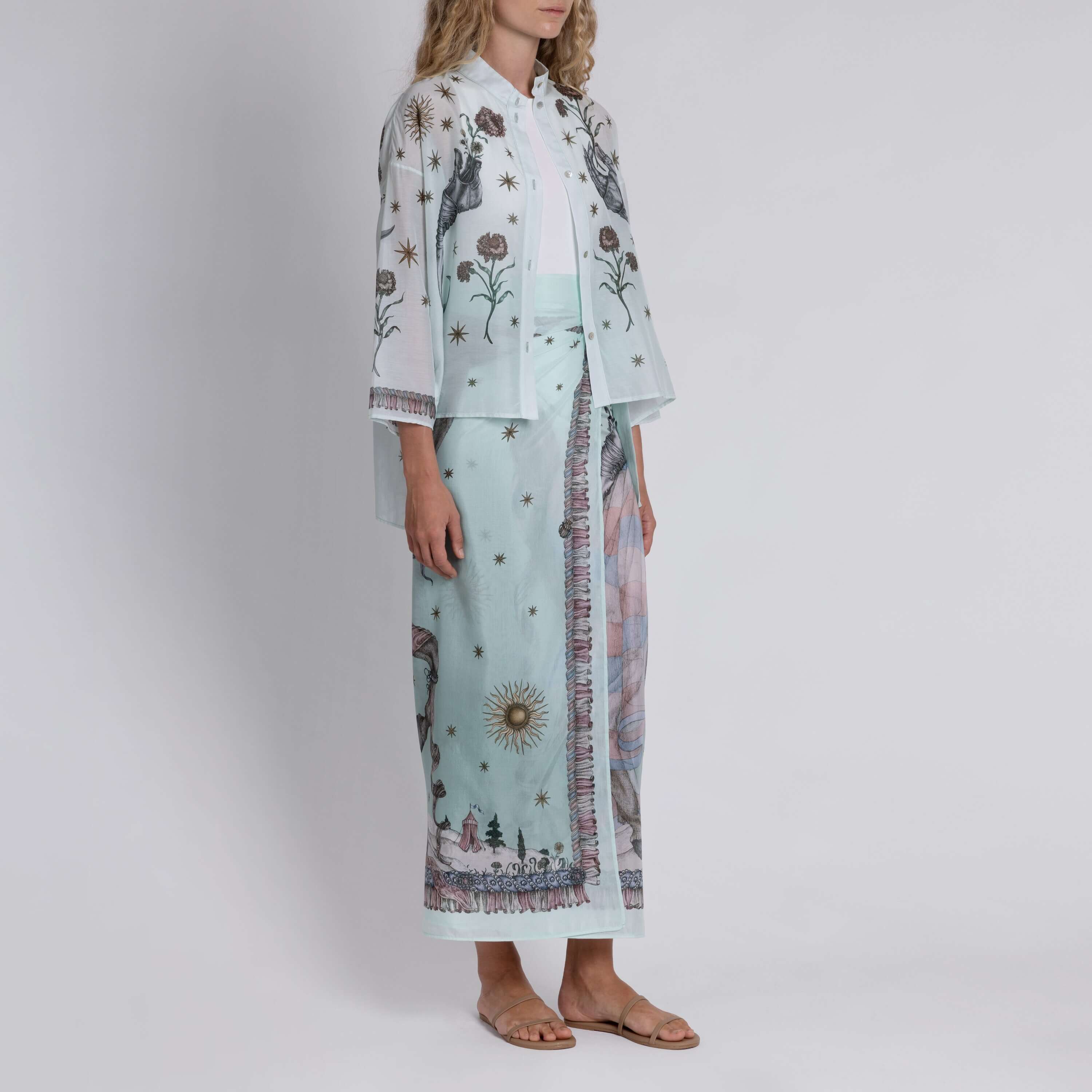 This Cotton/Silk Pareo is constructed in London from our ethereal, lightweight voile. It features a rectangular shape with ribbon ties to offer a multitude of styling options; as an elegant beach wrap around the hips, twisted at the centre front to create a skirt, knotted at the neck to create a simple dress or folded into a wrap top, these are just a few possible variations of the versatile pareo.